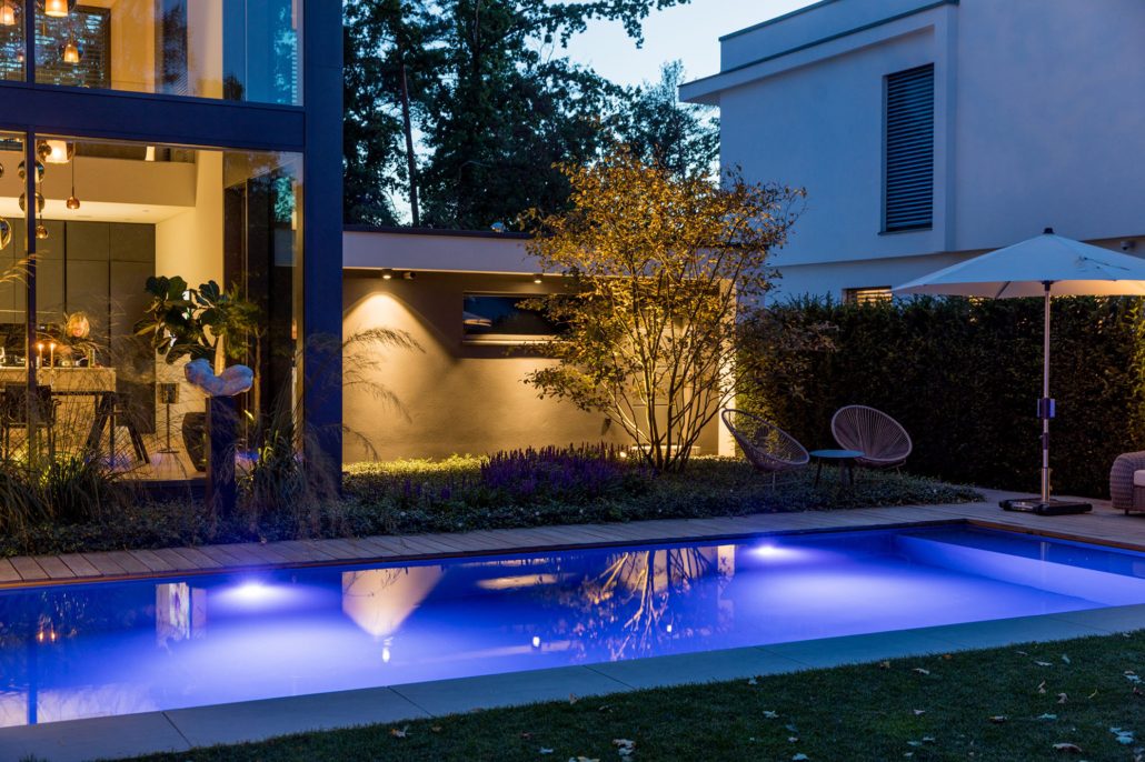 Malen Sie sich aus, wie Sie im kristallblauen Wasser abschalten oder die schnörkellose, moderne Geometrie einer spiegelglatten Oberfläche bewundern. Unsere Badebecken sind mehr als bloße Wellness-Bereiche – sie sind architektonische Statements, die Ihre Grünanlage in eine Oase der Entspannung verwandeln.